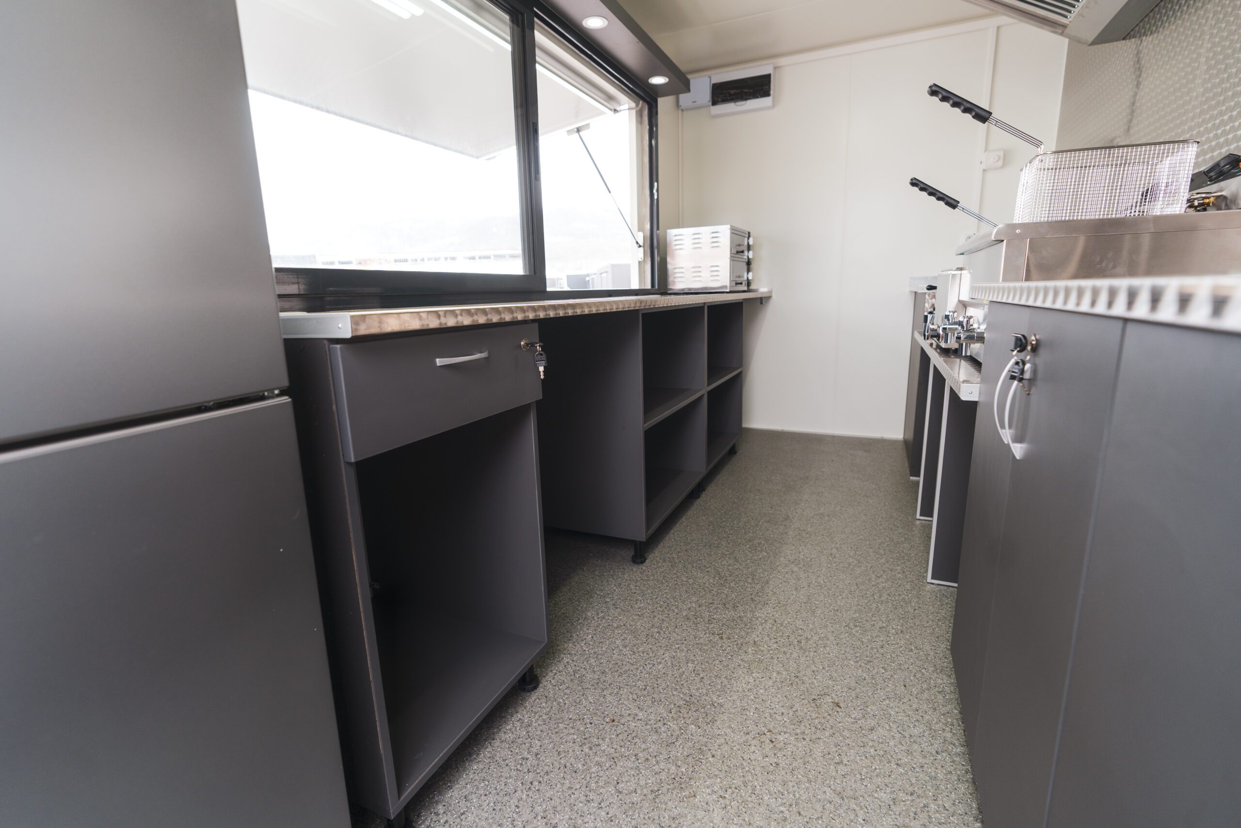 • Instalație electrică monofazată 220V: contor electric, tablou de siguranțe, plafonieră LED cu întrerupător, priză exterioară de alimentare, 6 prize duble (max 3,5 kW), 1 priză dublă (max 7 kW), circuit hotă și protecție diferențială.