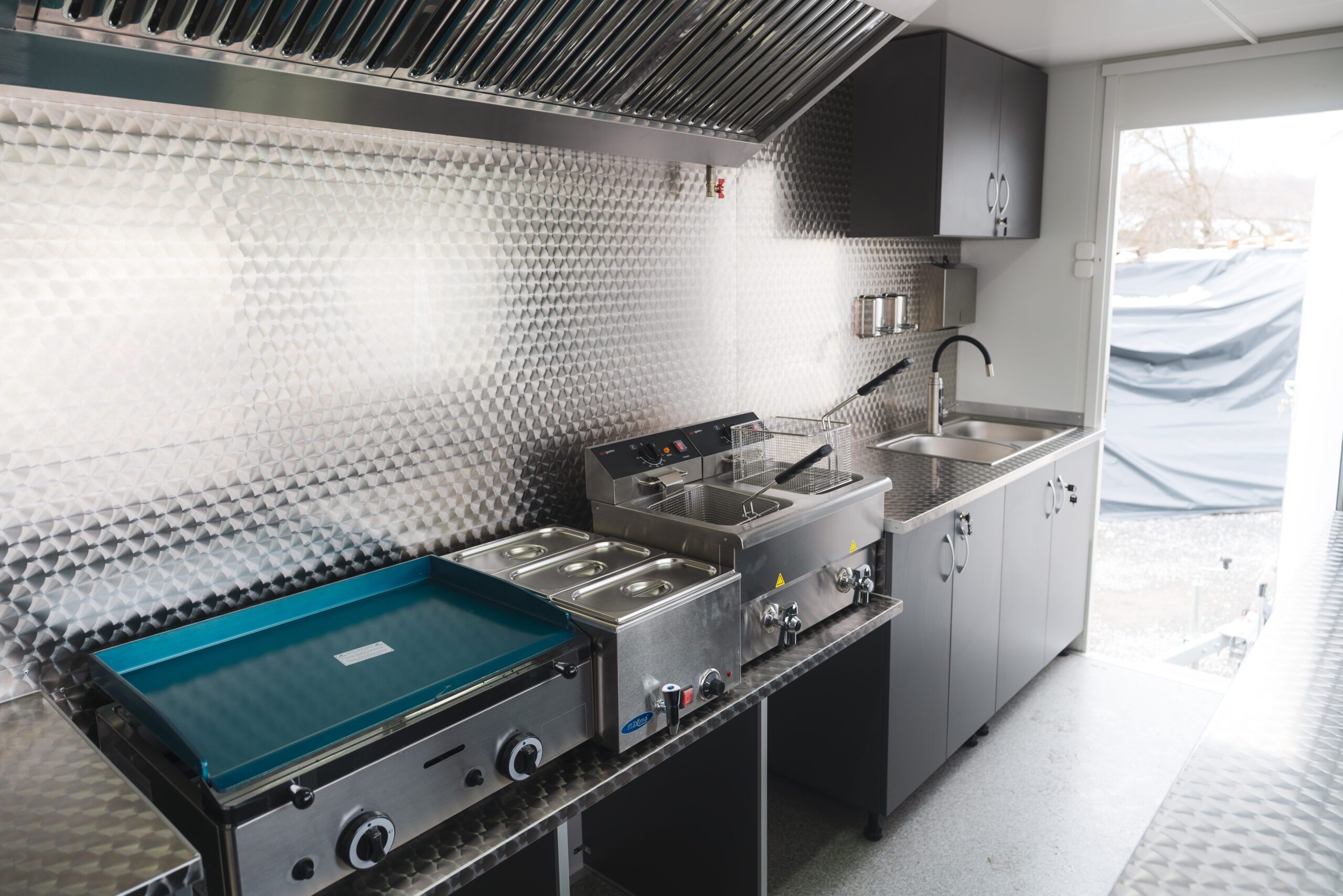 • Hotă profesională: Din inox, dotată cu motor și variator de viteză
